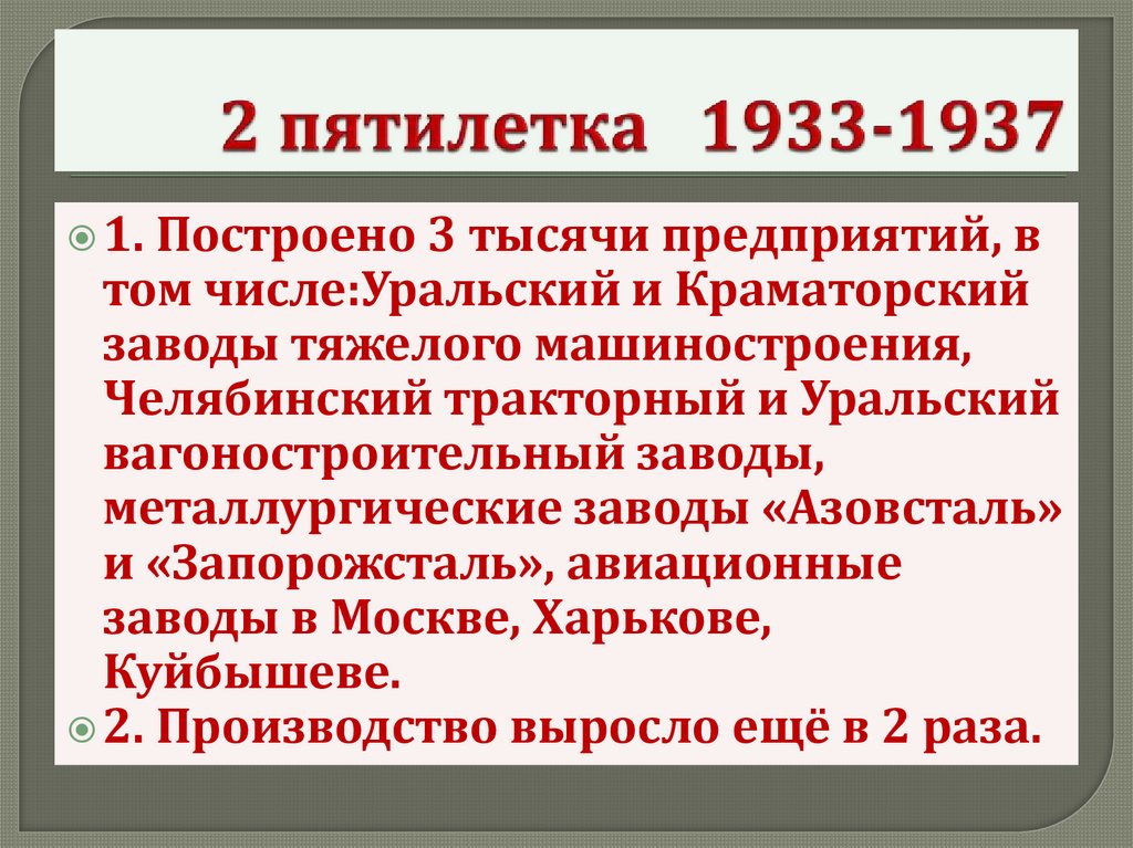 1. Построено 3 тысячи предприятий, втом числе:Уральский и Краматорский
