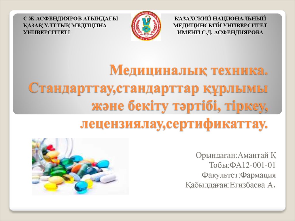 Медициналық техника. Стандарттау,стандарттар құрлымы және бекіту тәртібі, тіркеу, лецензиялау,сертификаттау