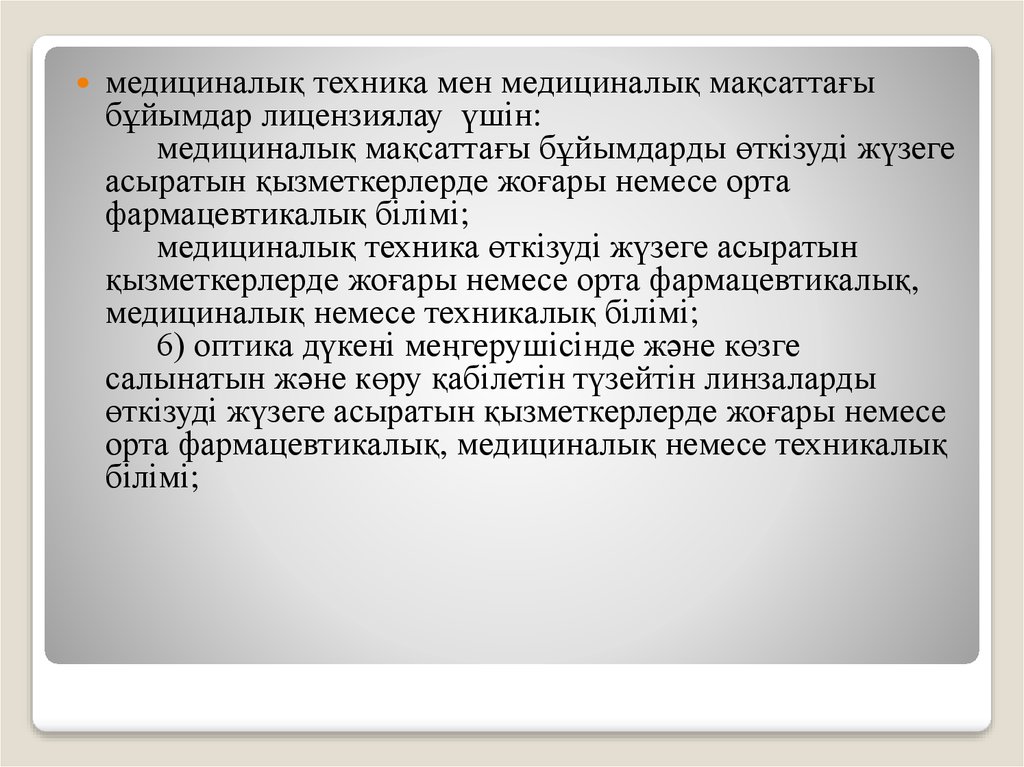 медициналық техника мен медициналық мақсаттағыбұйымдар лицензиялау үшін:
