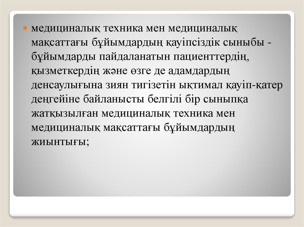 медициналық техника мен медициналықмақсаттағы бұйымдардың қауiпсiздiк сыныбы бұйымдарды пайдаланатын пациенттердiң,
