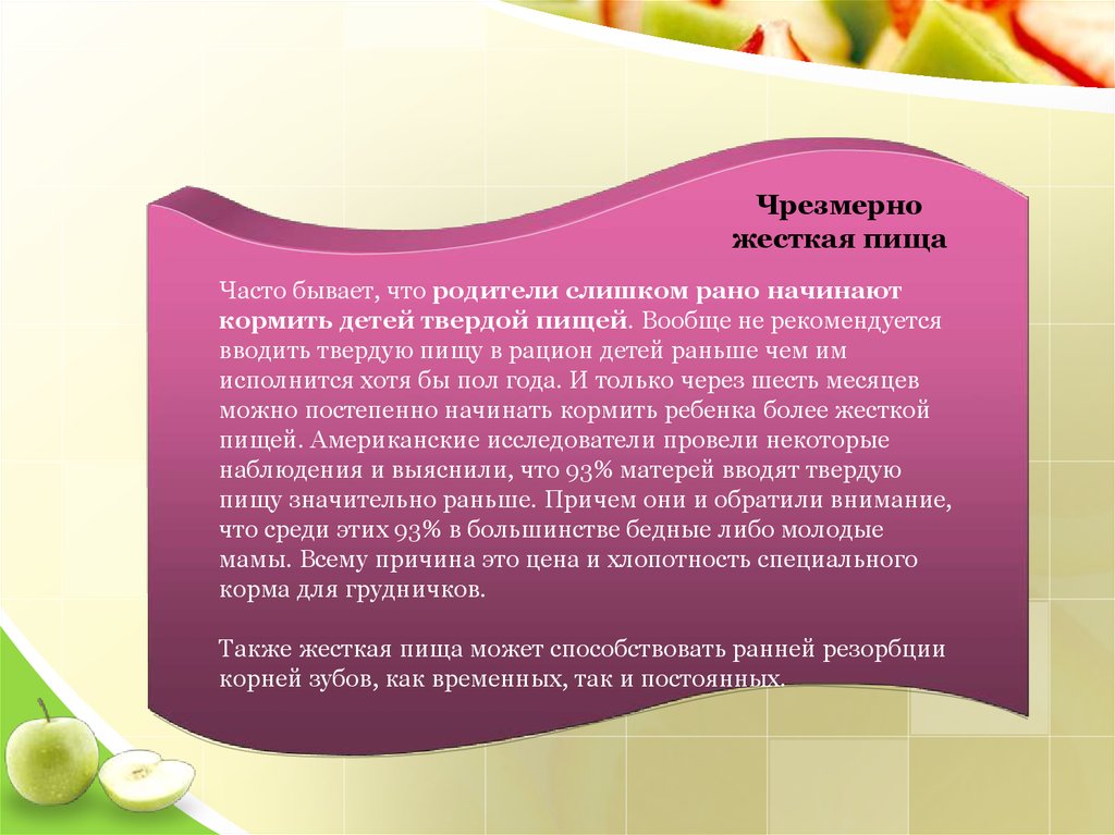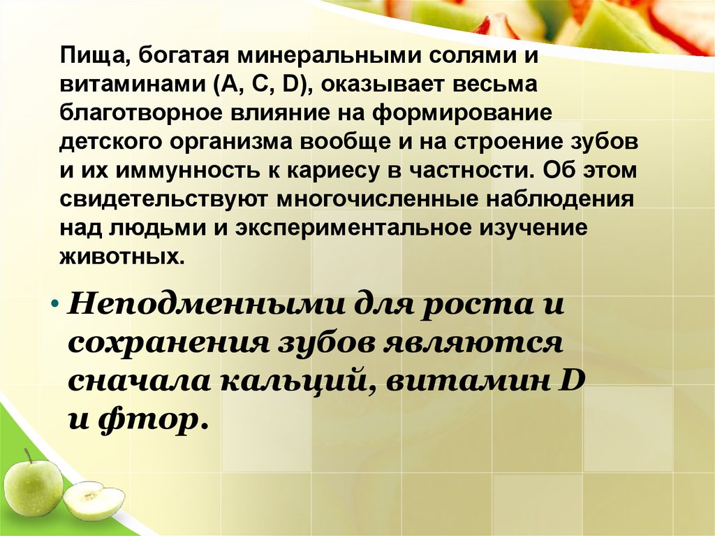 Питание играет огромое значение как впрофилактике кариеса и воспалительных болезней
