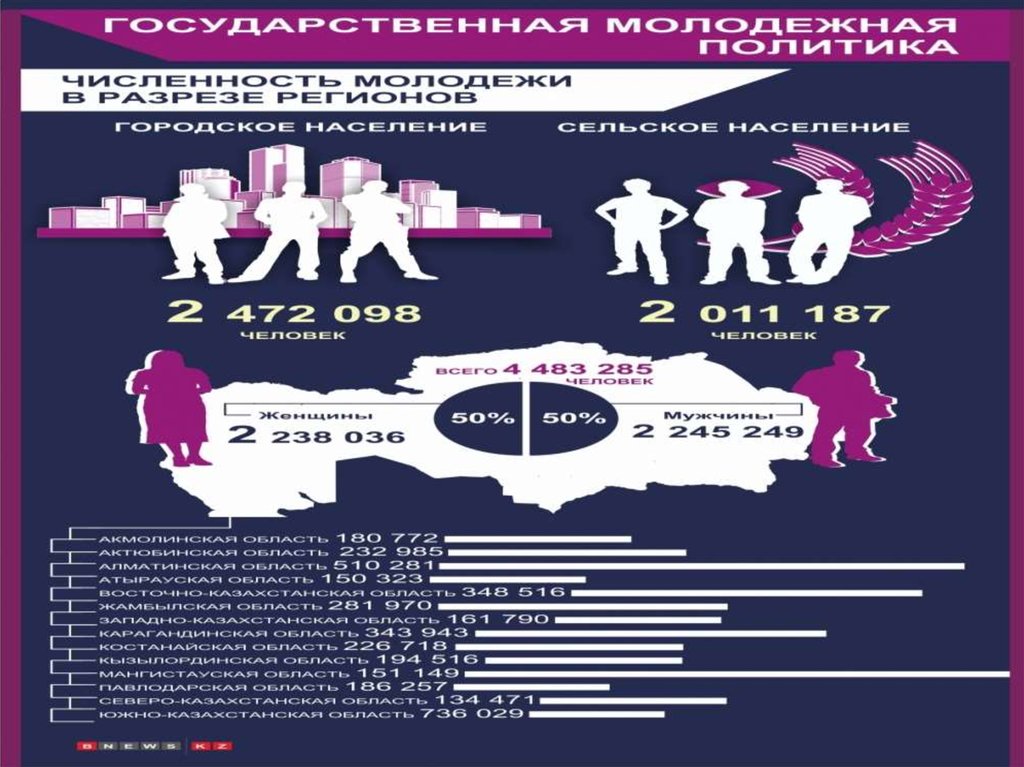 аралығын қурайтын жастар салмағы 27,5%ды қурайды . Яғни жастар саны шамамен