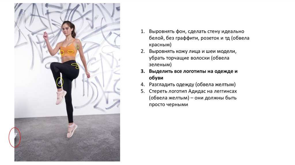 5. Стереть логотип Адидас на леггинсах