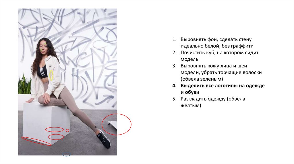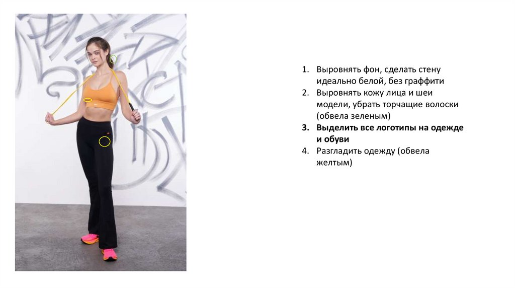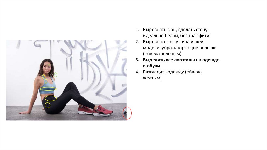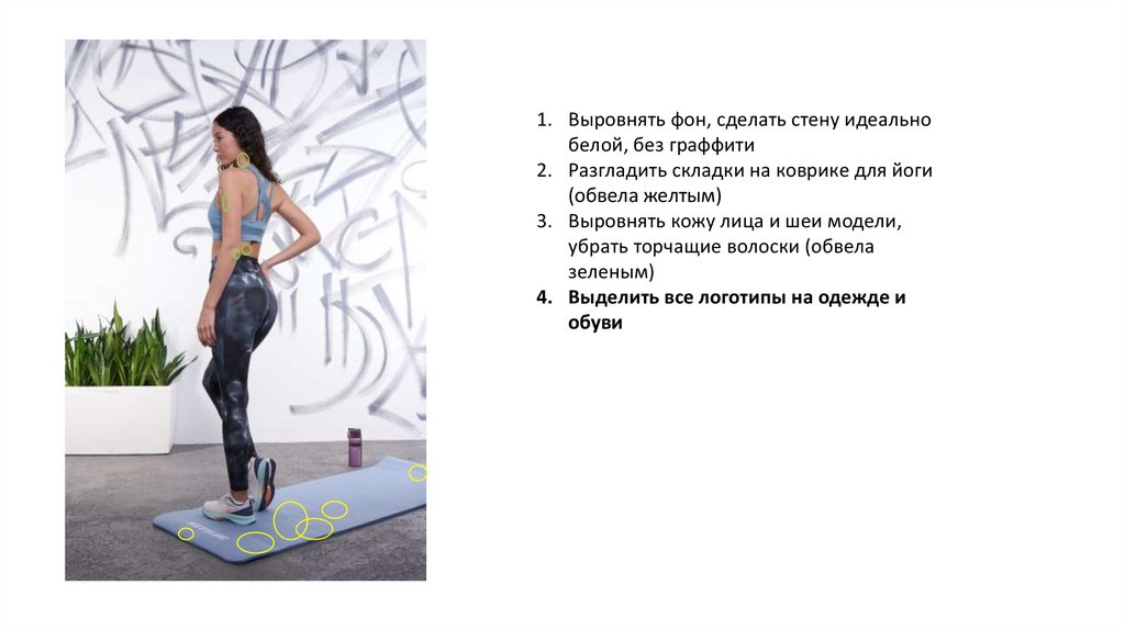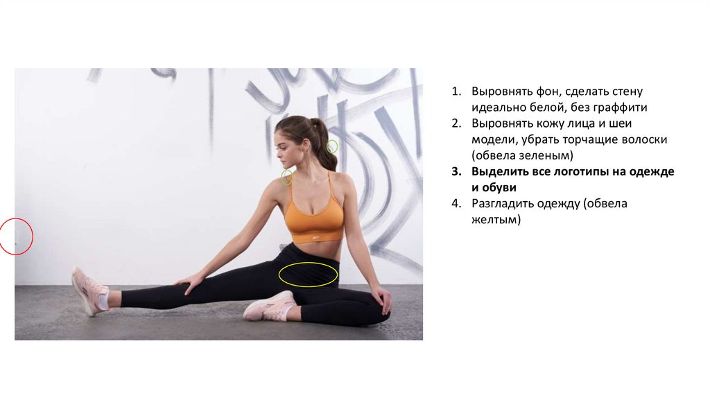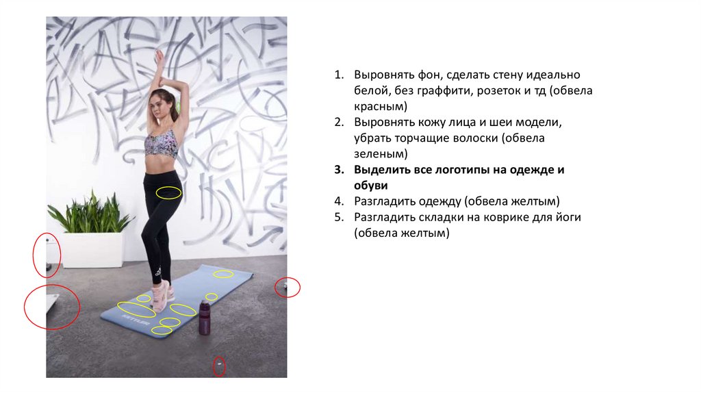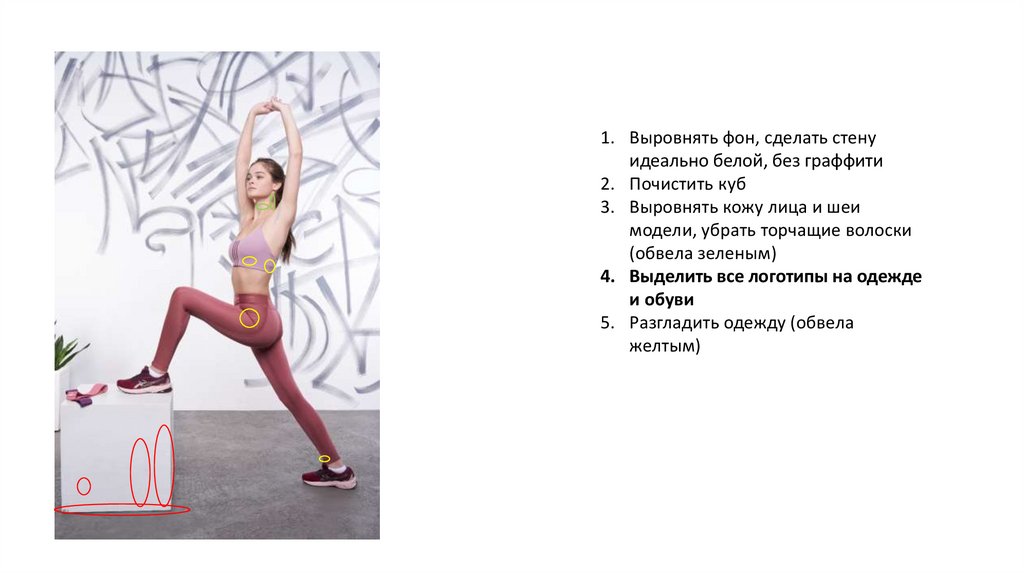 1. Выровнять фон, сделать стенуидеально белой, без граффити
