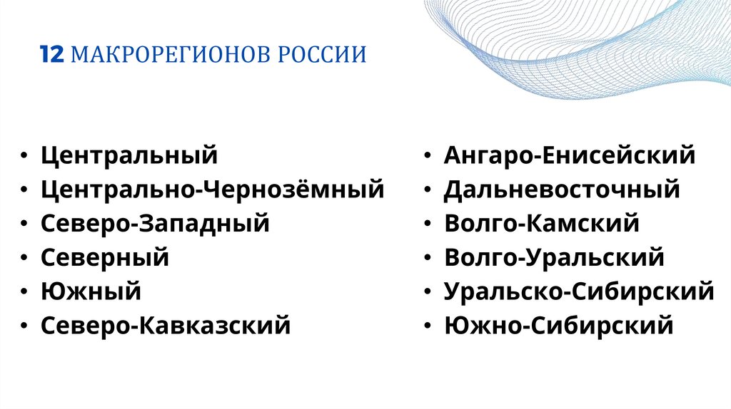 12 МАКРОРЕГИОНОВ РОССИИ• Центральный