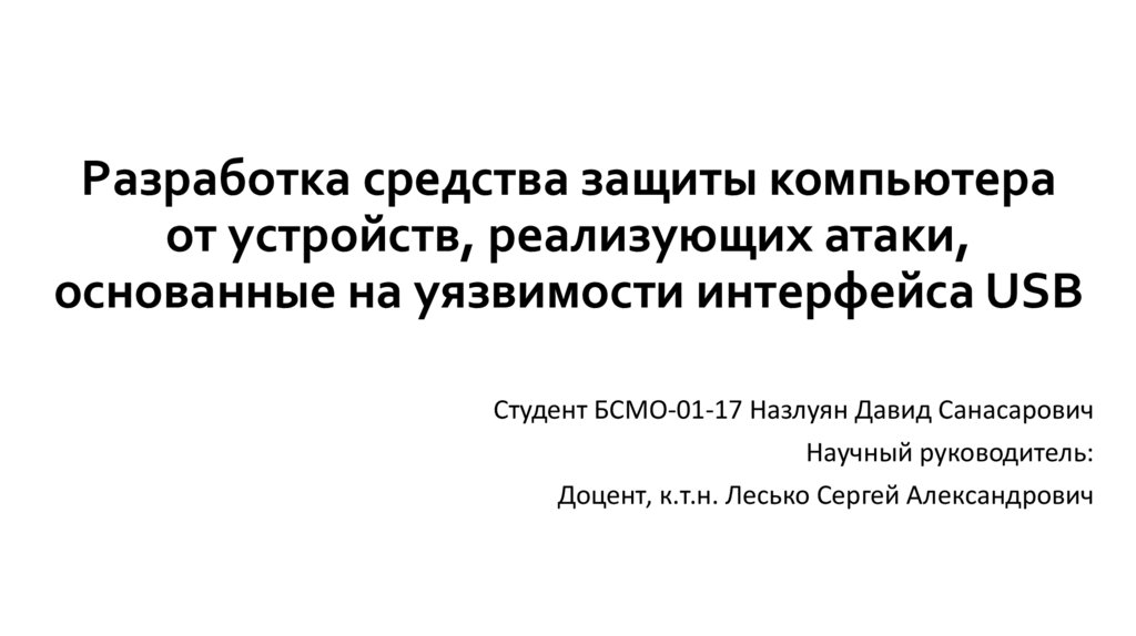 Разработка средства защиты компьютера от устройств, реализующих атаки, основанные на уязвимости интерфейса USB