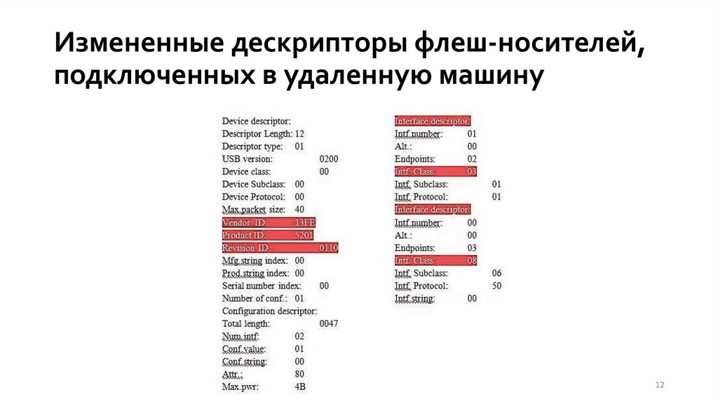 Измененные дескрипторы флеш-носителей,подключенных в удаленную машину