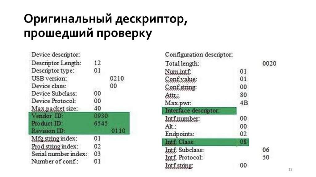 несовпадениях дискрипторов в хост-контроллере ПК при