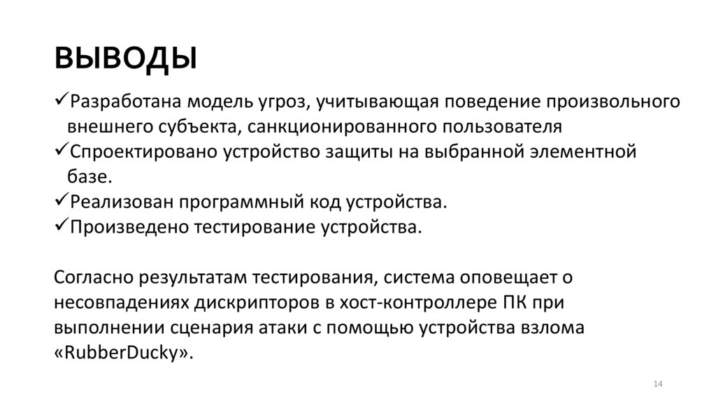 ВЫВОДЫРазработана модель угроз, учитывающая поведение произвольного