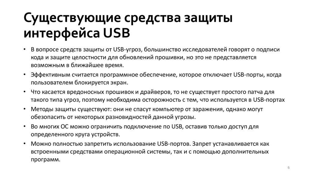 • В вопросе средств защиты от USB-угроз, большинство исследователей говорят о подписи