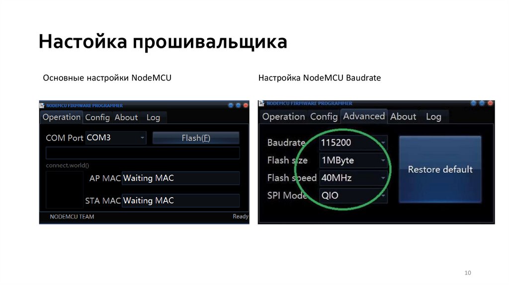 Настойка прошивальщикаОсновные настройки NodeMCU