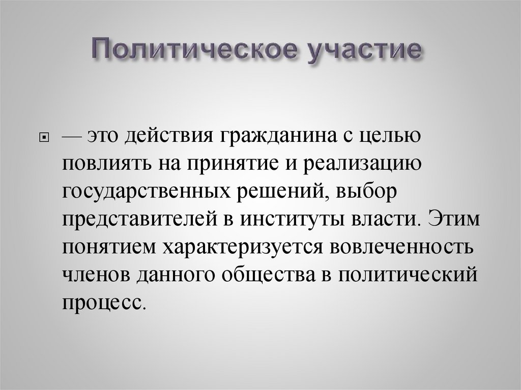 — это действия гражданина с цельюповлиять на принятие и реализацию