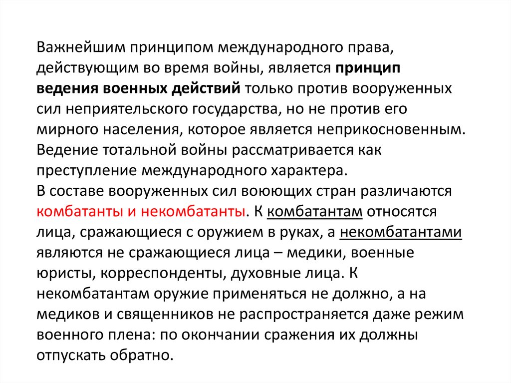 Важнейшим принципом международного права,действующим во время войны, является принцип