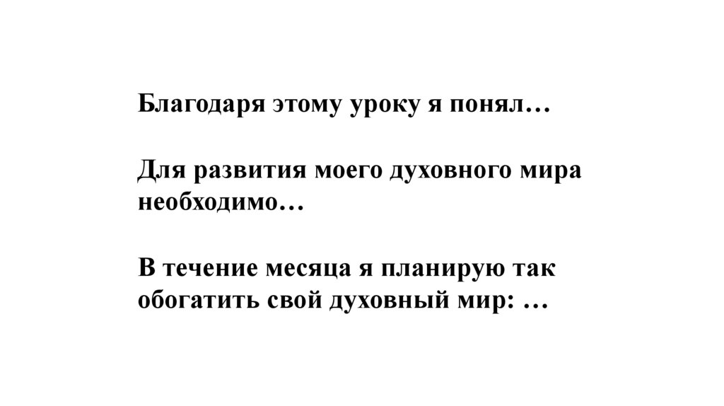 Благодаря этому уроку я понял…Для развития моего духовного мира