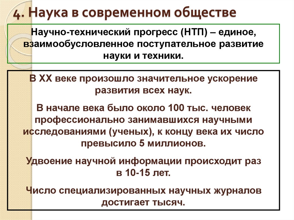 4. Наука в современном обществеНаучно-технический прогресс (НТП) – единое,