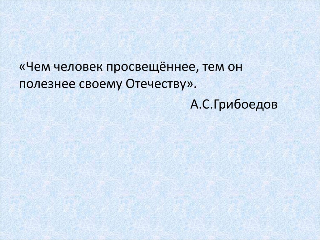 «Чем человек просвещённее, тем онполезнее своему Отечеству».