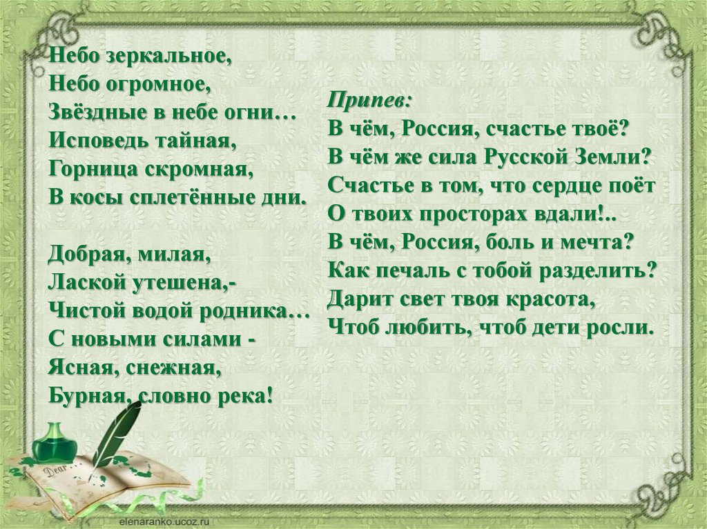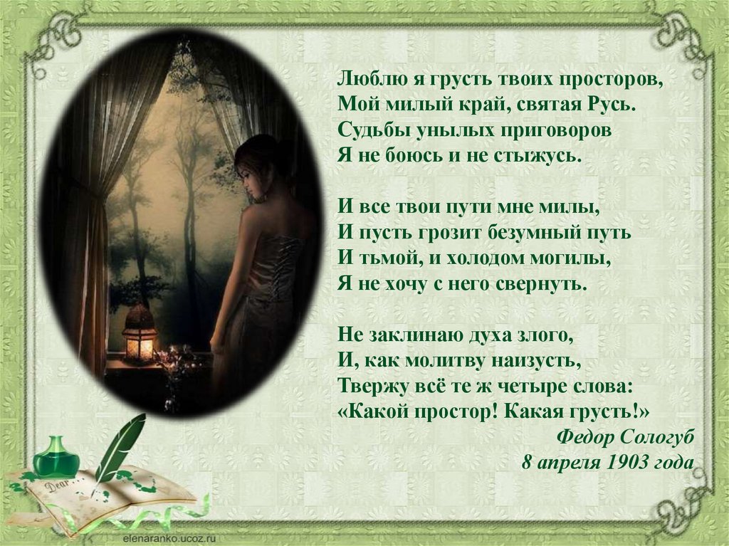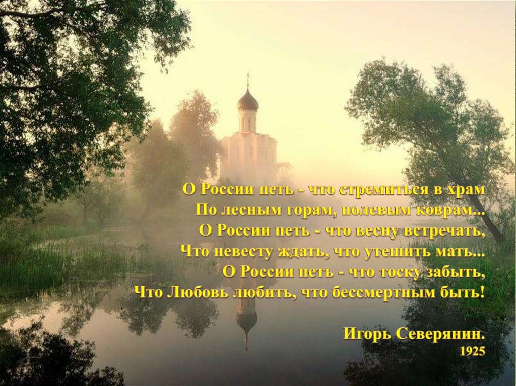 Люблю я грусть твоих просторов,Мой милый край, святая Русь.