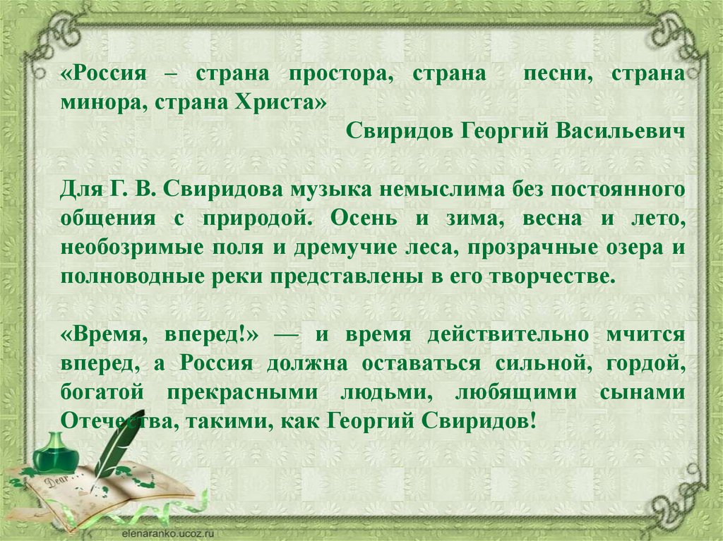 Для Г. В. Свиридова музыка немыслима без постоянного