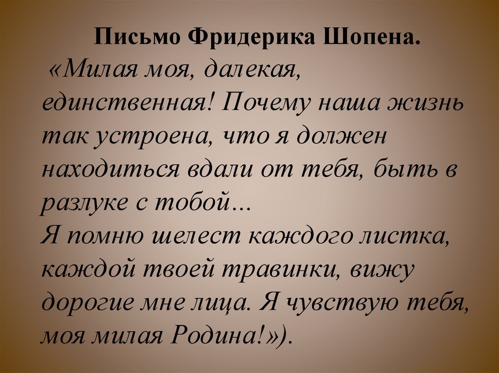 Письмо Фридерика Шопена.«Милая моя, далекая,