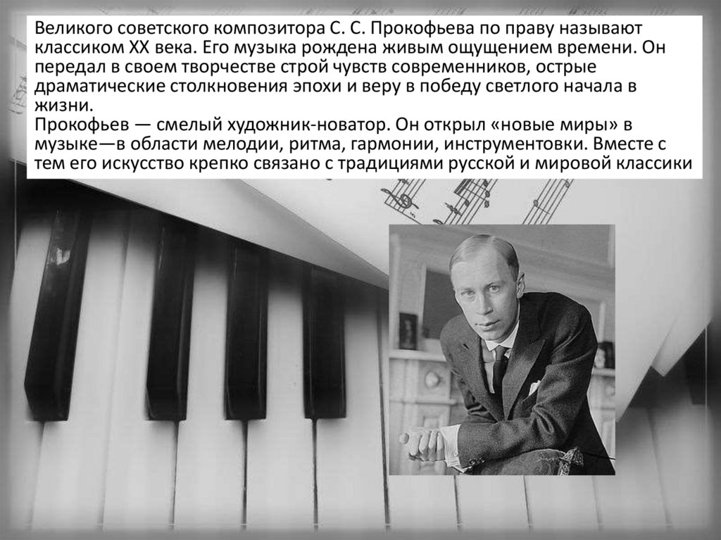 Великого советского композитора С. С. Прокофьева по праву называютклассиком XX века. Его музыка рождена живым ощущением времени. Он
