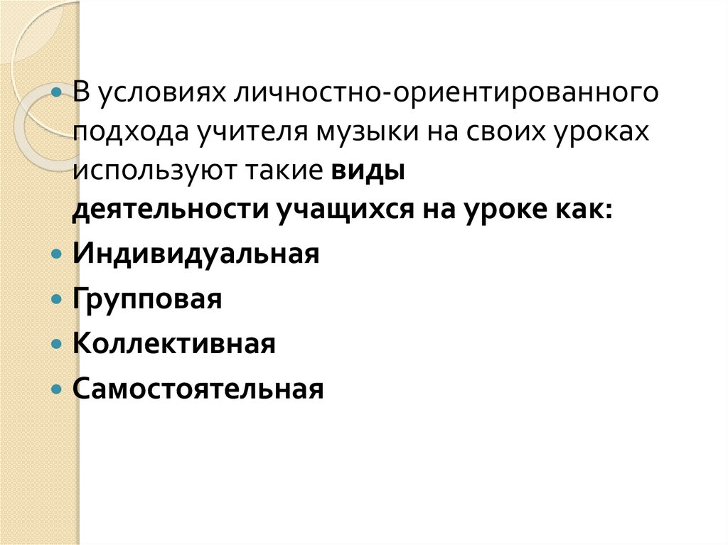 В условиях личностно-ориентированногоподхода учителя музыки на своих уроках