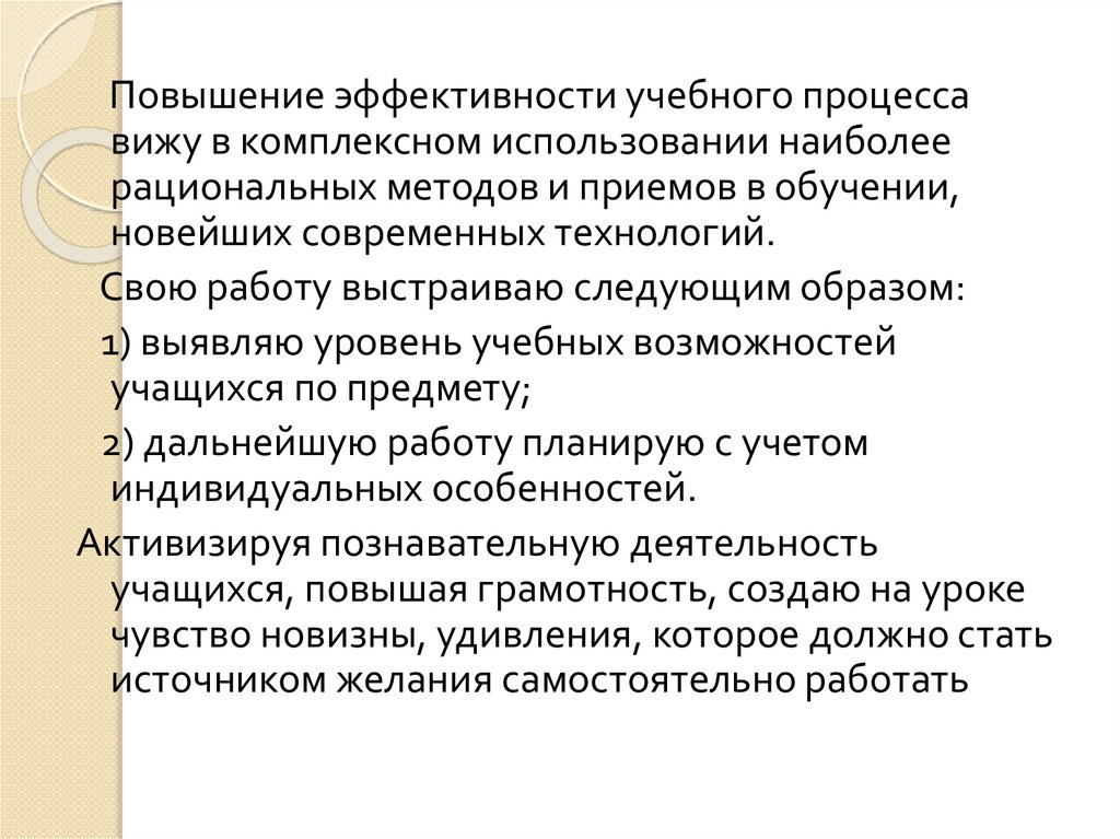 Повышение эффективности учебного процессавижу в комплексном использовании наиболее