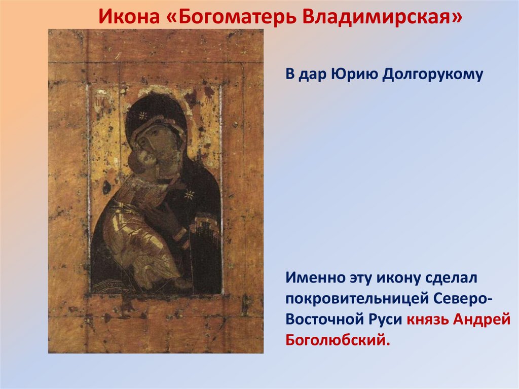 Икона «Богоматерь Владимирская»В дар Юрию Долгорукому