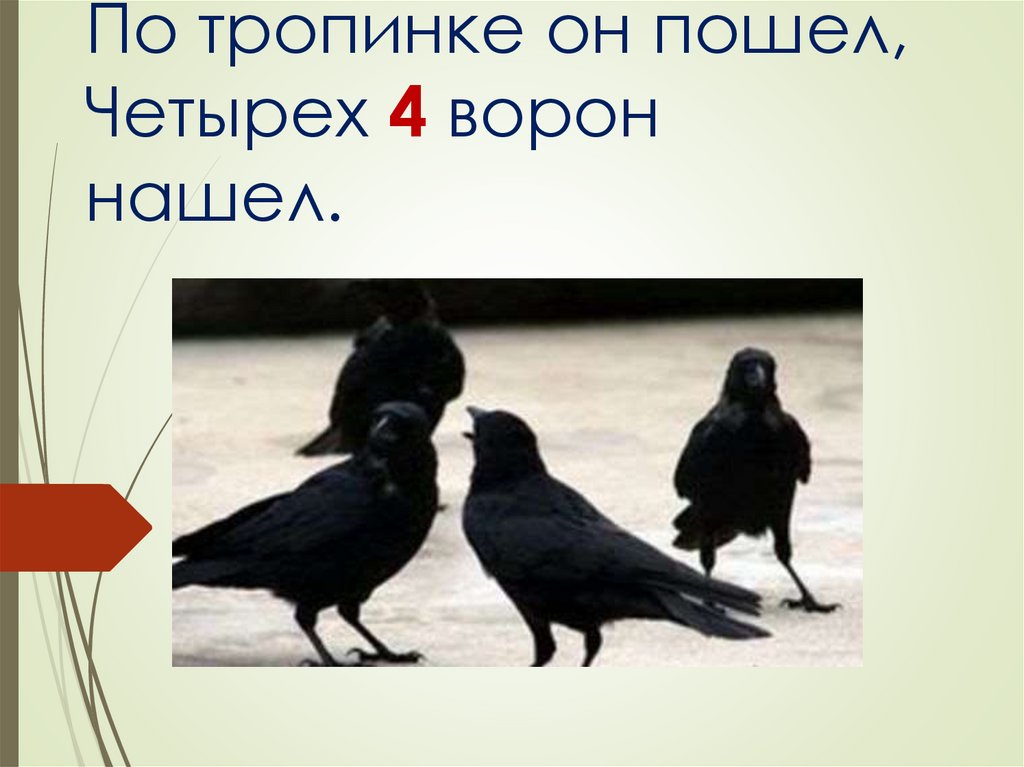 По тропинке он пошел,Четырех 4 ворон