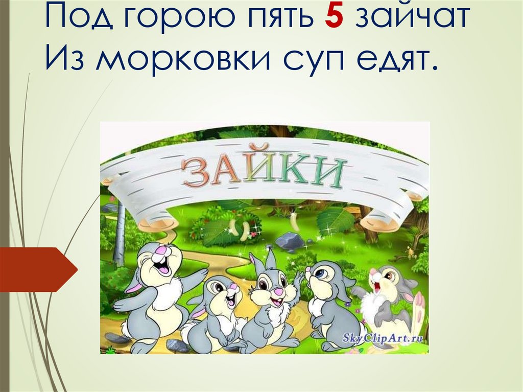 Под горою пять 5 зайчатИз морковки суп едят.