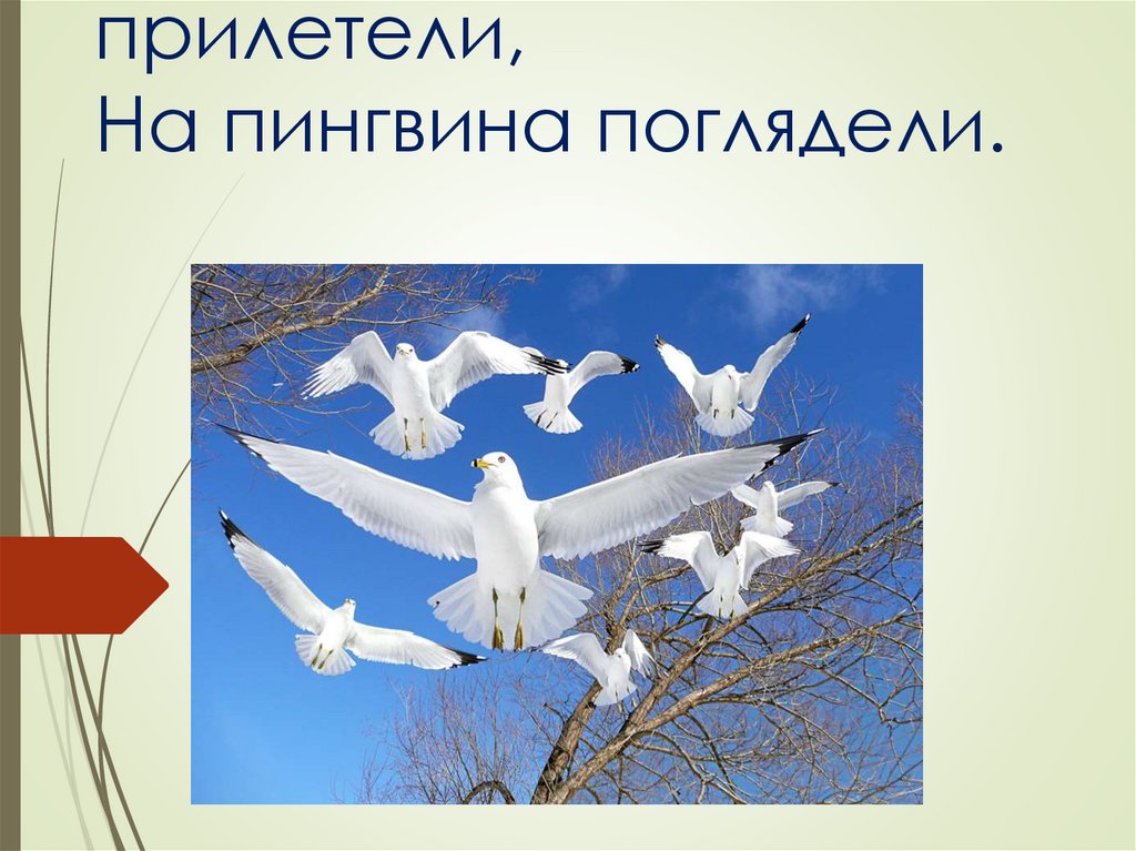 прилетели,На пингвина поглядели.