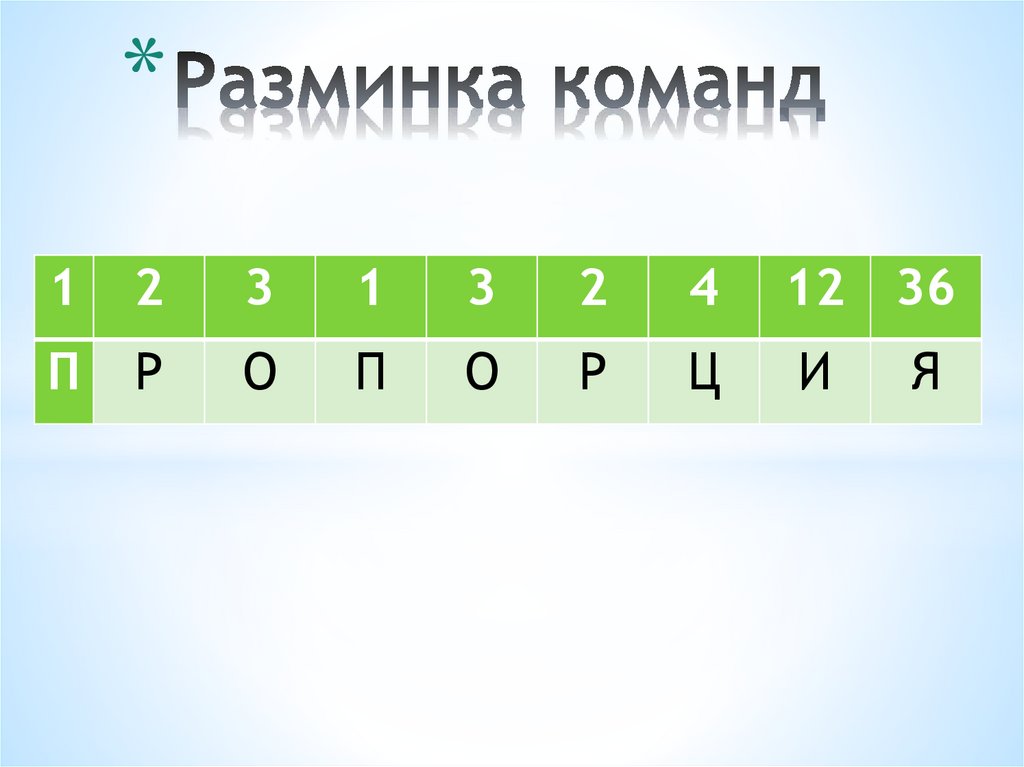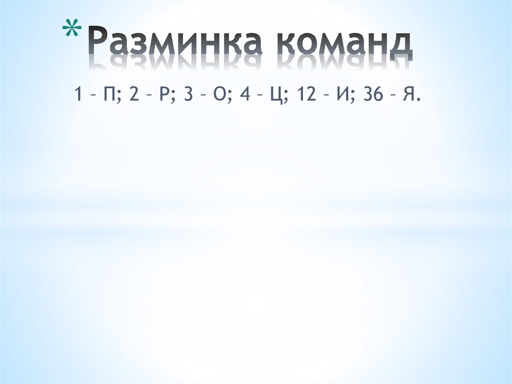 *1 – П; 2 – Р; 3 – О; 4 – Ц; 12 – И; 36 – Я.