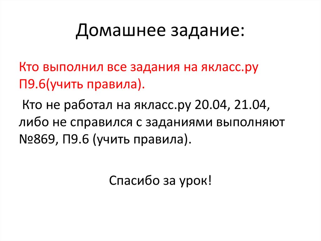 Домашнее задание:Кто выполнил все задания на якласс.ру