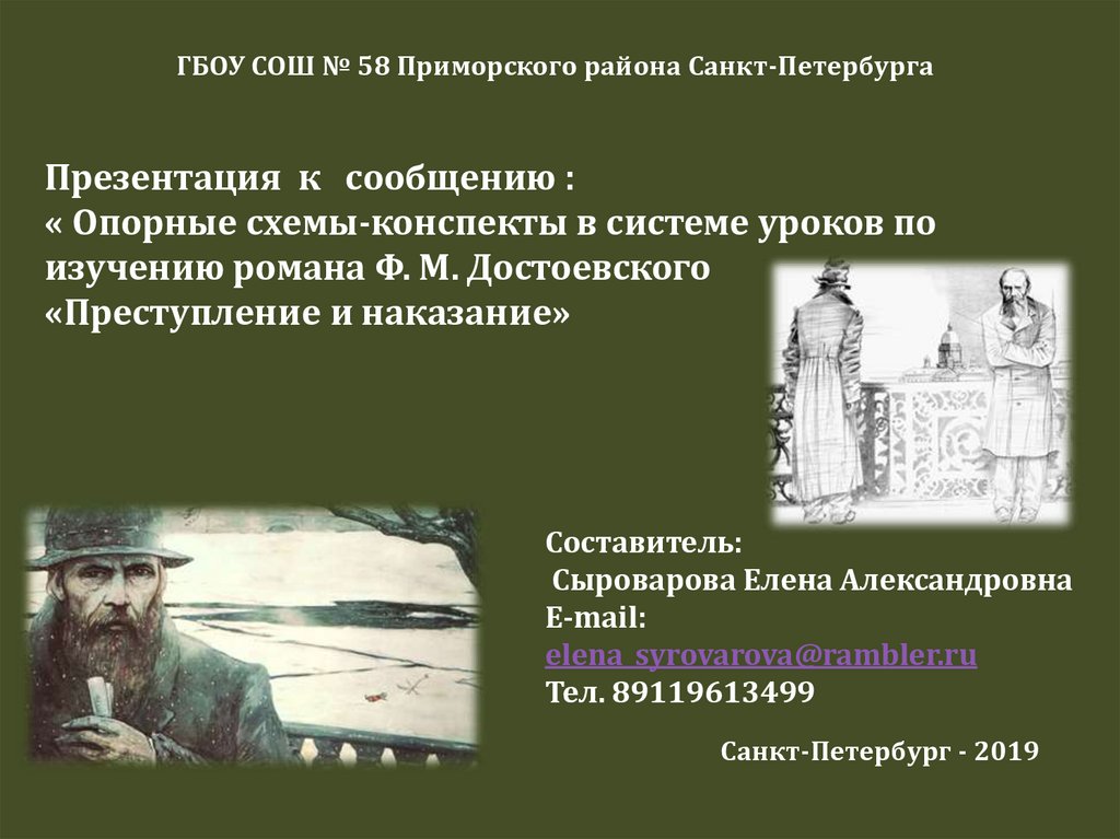Опорные схемы-конспекты в системе уроков по изучению романа Ф.М. Достоевского «Преступление и наказание»