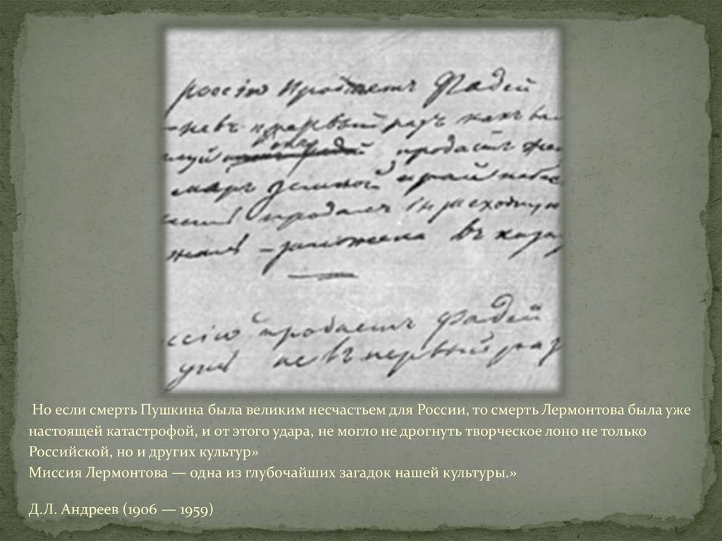 Миссия Лермонтова — одна из глубочайших загадок нашей культуры.»