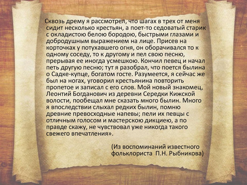 фольклориста П.Н. Рыбникова)