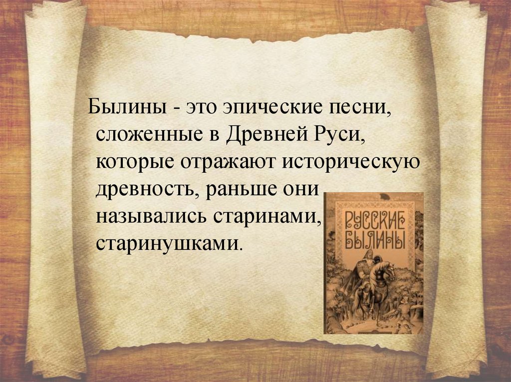 Былины - это эпические песни,сложенные в Древней Руси,