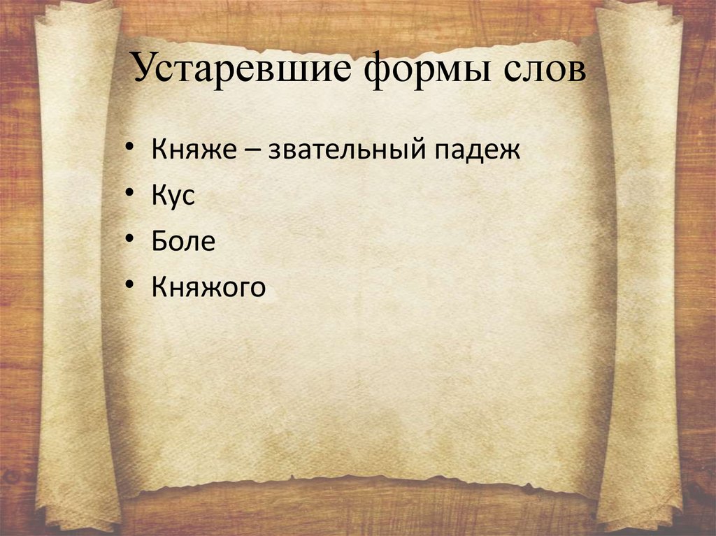 Устаревшие формы словКняже – звательный падеж