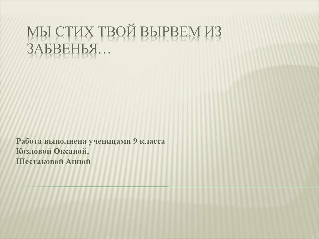 МЫ СТИХ ТВОЙ ВЫРВЕМ ИЗЗАБВЕНЬЯ…