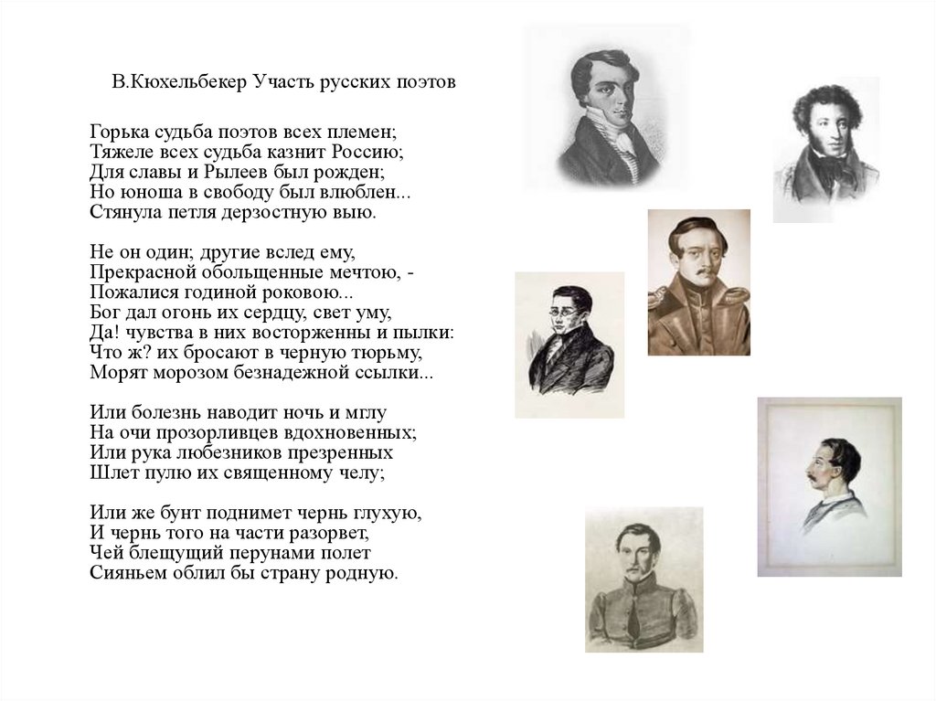 В.Кюхельбекер Участь русских поэтовГорька судьба поэтов всех племен;