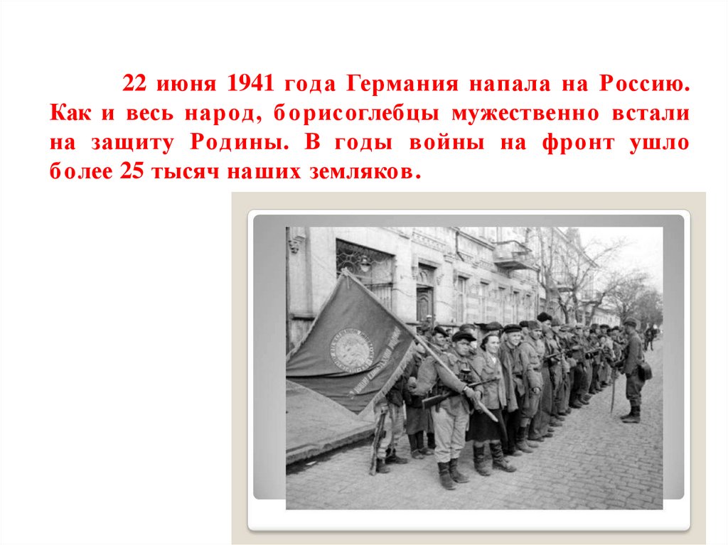 22 июня 1941 года Германия напала на Россию.Как и весь народ, б орисоглебцы мужественно встали