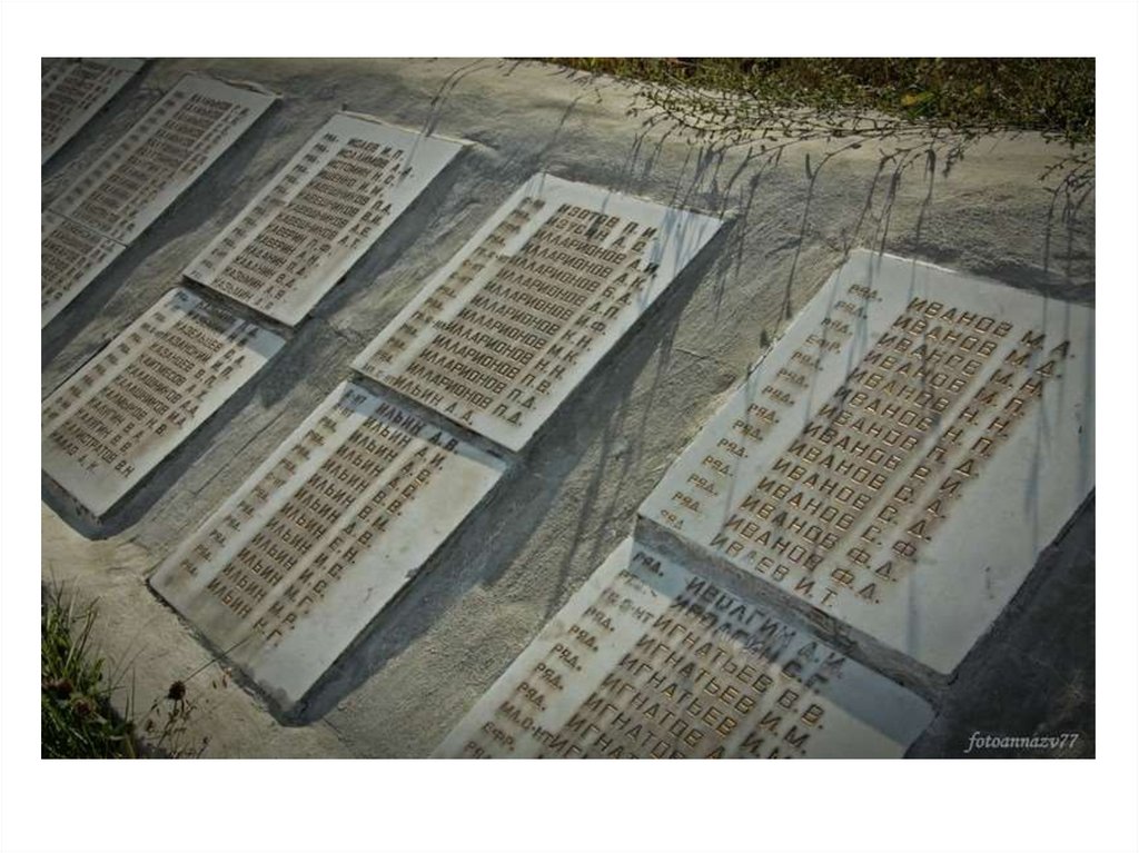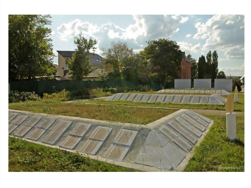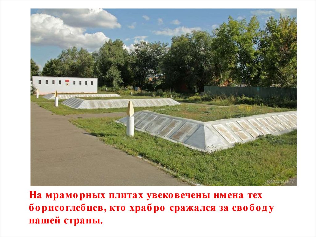 На мрамо рных плитах увековечены имена техбо рисоглебцев, кто храб ро сражался за сво б од у