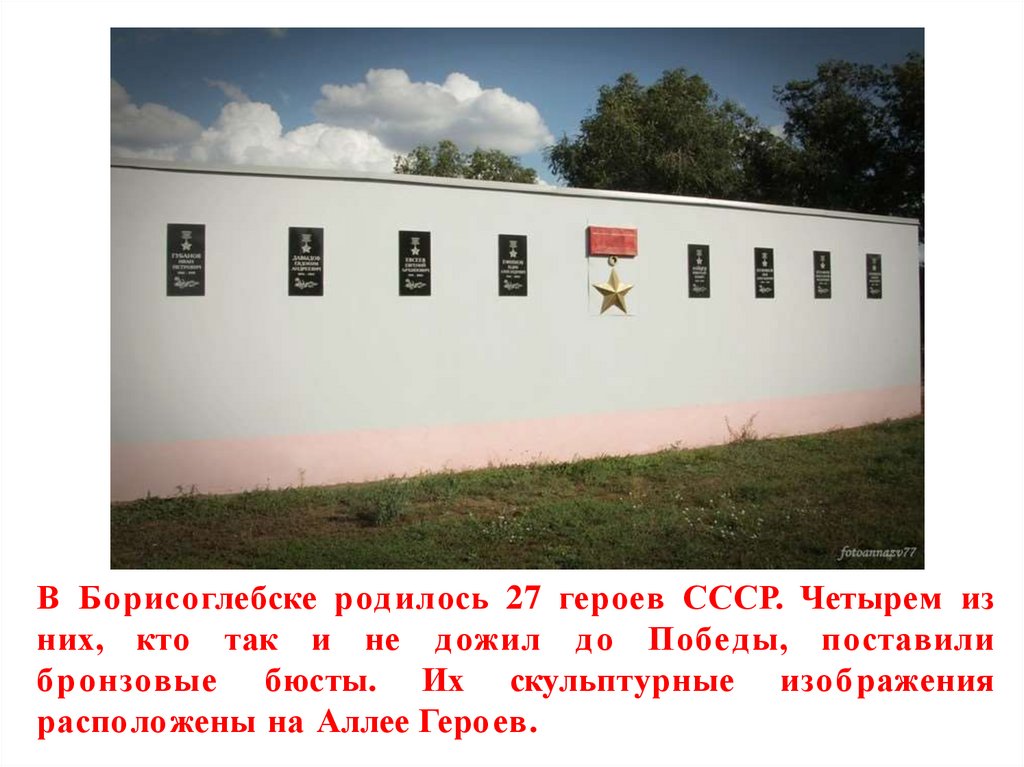 В Борисоглебске родилось 27 героев СССР. Четырем изних, кто так и не дожил до Победы, поставили