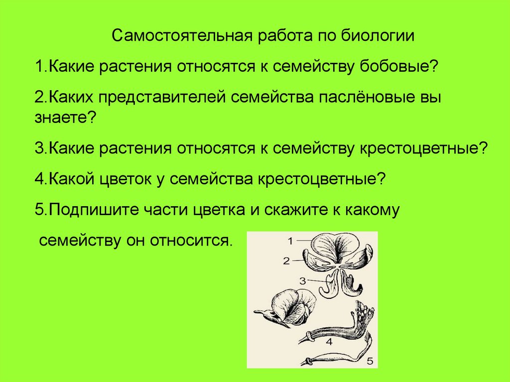 Самостоятельная работа по биологии1.Какие растения относятся к семейству бобовые?