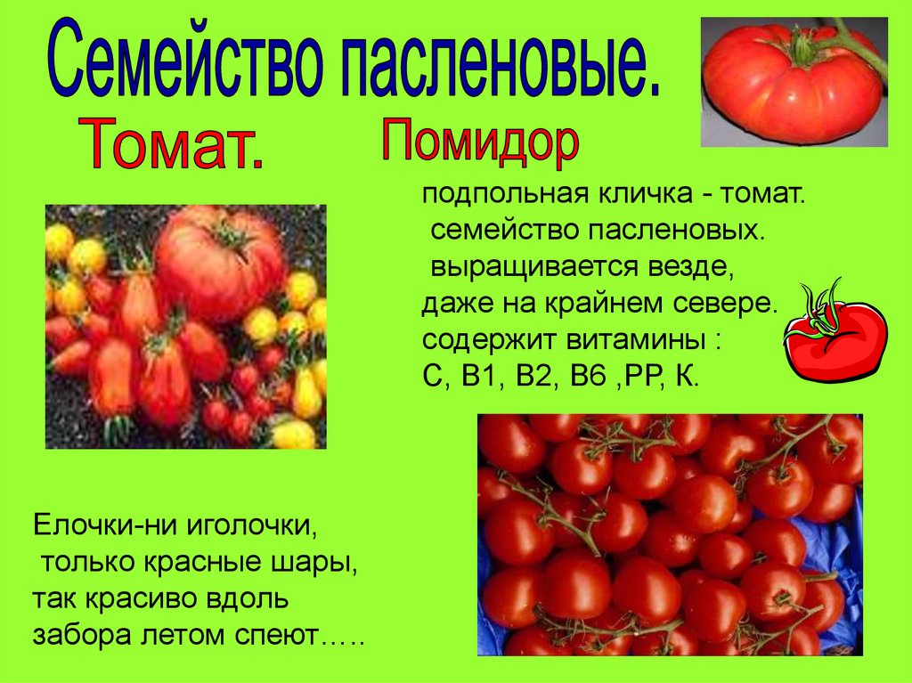 подпольная кличка - томат.семейство пасленовых.