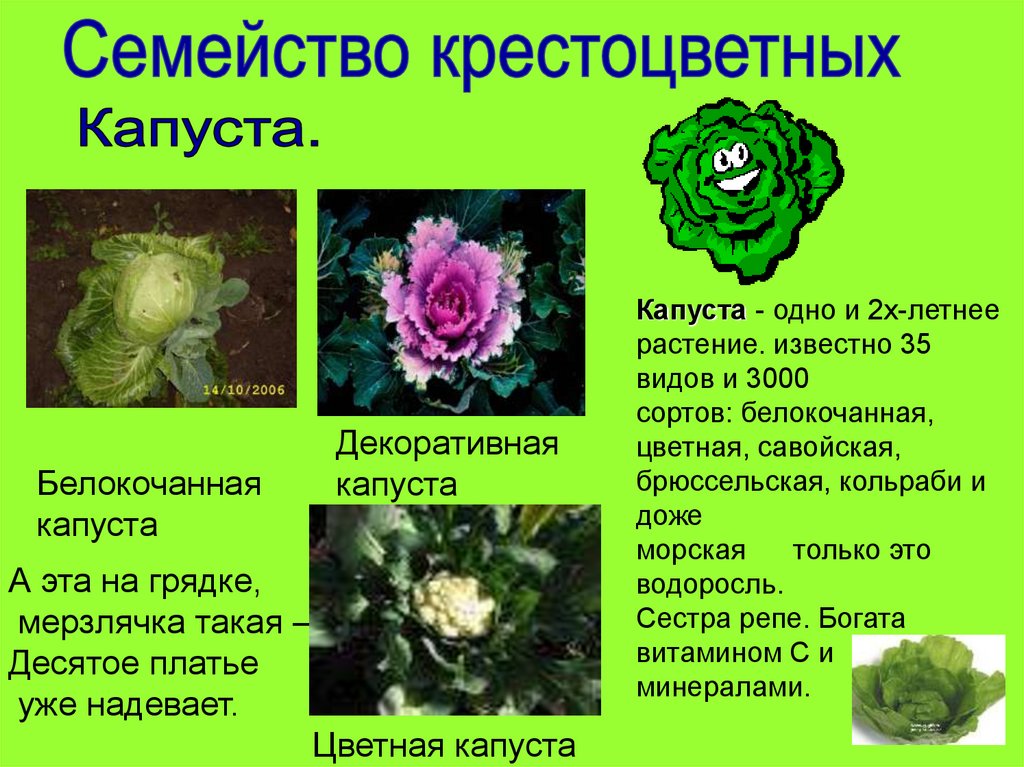 3.Какие растения относятся к семейству крестоцветные?