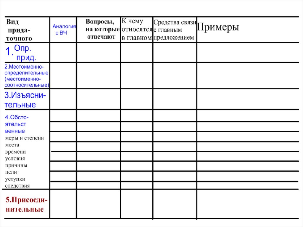 Виды придаточных. Работа с теорией