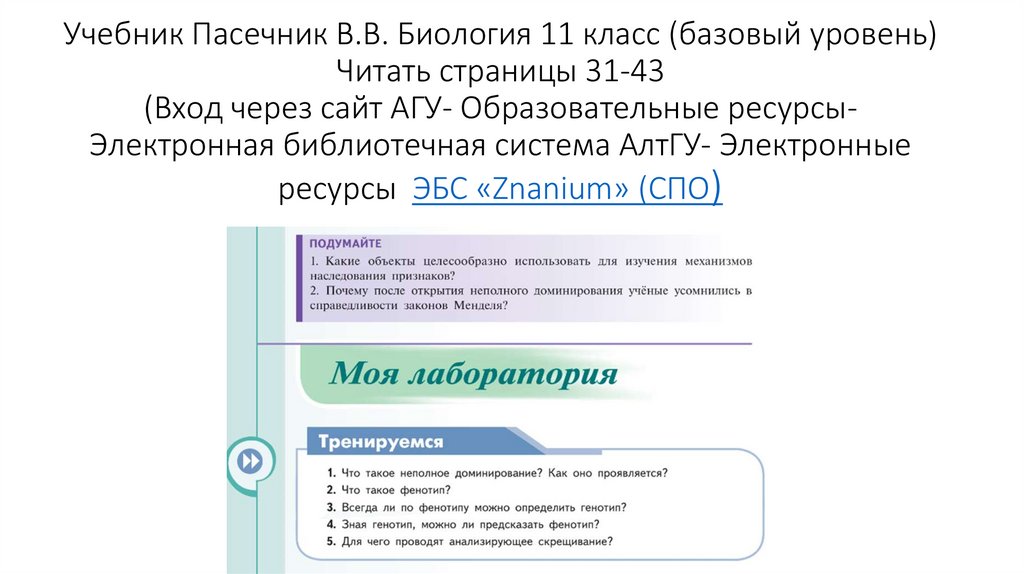 Учебник Пасечник В.В. Биология 11 класс (базовый уровень)Читать страницы 31-43