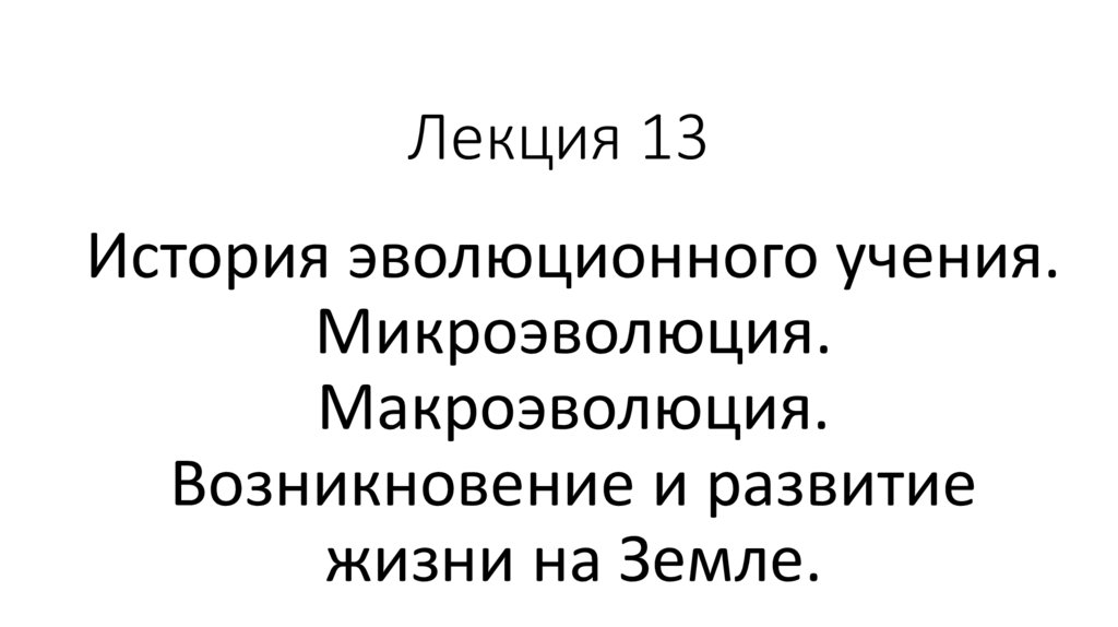 История эволюционного учения. Микроэволюция. Макроэволюция. Возникновение и развитие жизни на Земле. Лекция 13