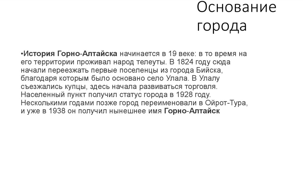 •История Горно-Алтайска начинается в 19 веке: в то время на