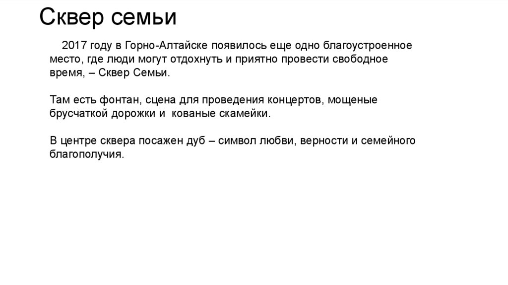 Сквер семьи2017 году в Горно-Алтайске появилось еще одно благоустроенное